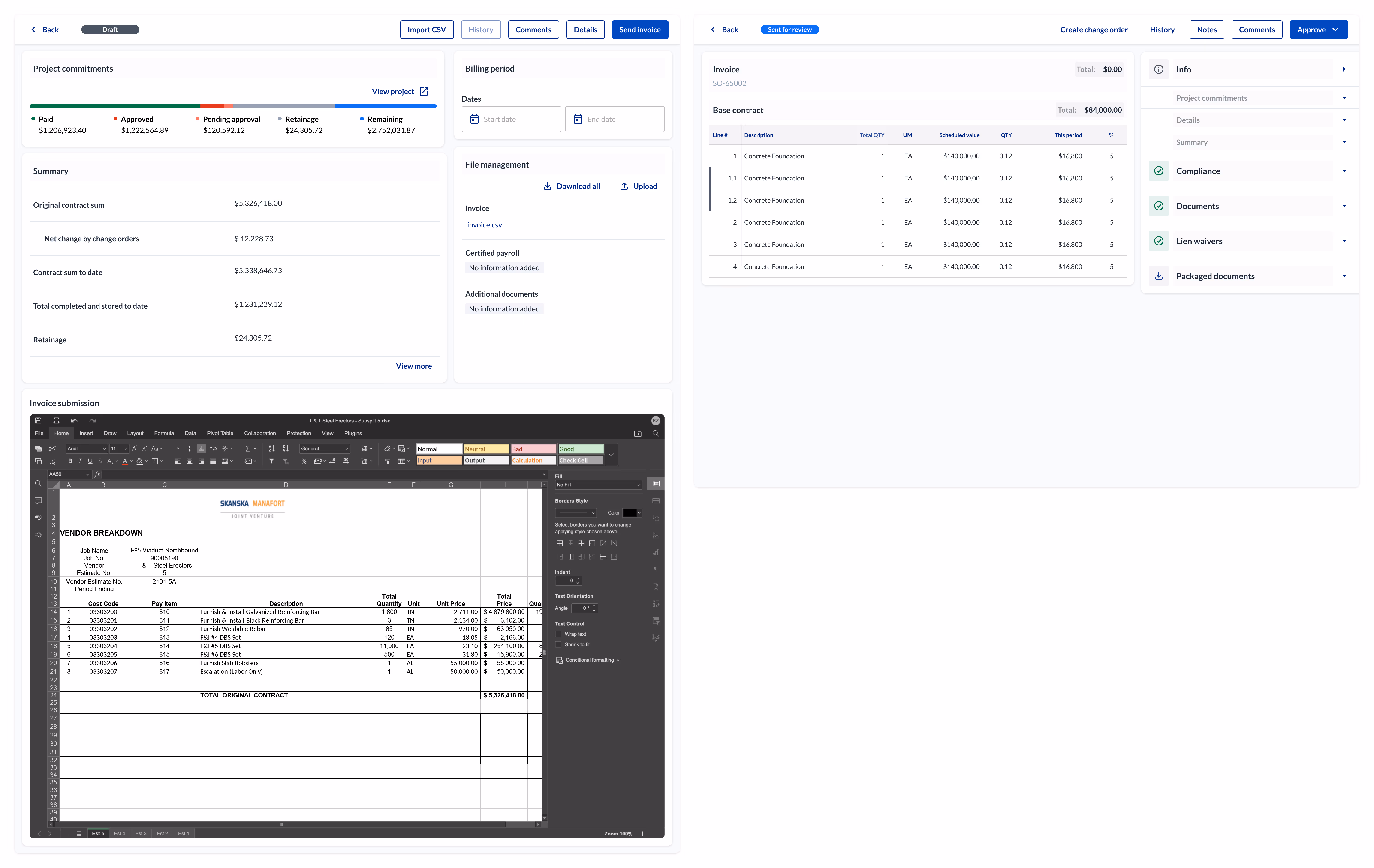 - Faster Review Cycles: Invoices and SOVs could be submitted, reviewed, and approved directly in-platform.